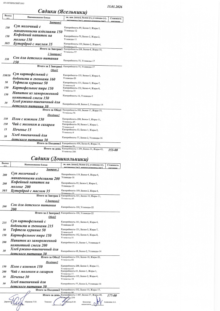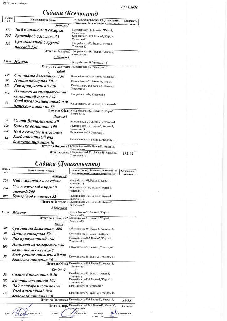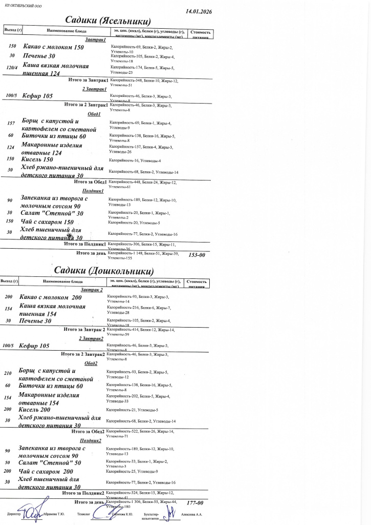- среднесуточный набор продуктов для каждой возрастной группы;