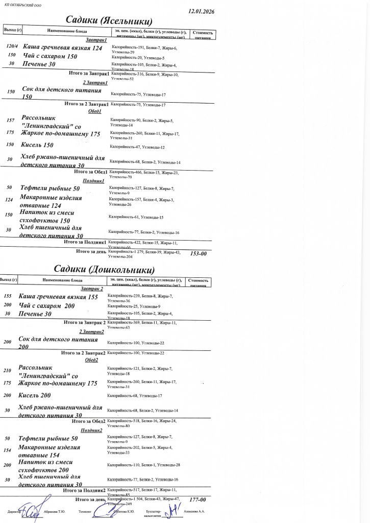 При необходимости внесения изменения в меню /несвоевременный завоз продуктов, недоброкачественность продукта/медсестрой составляется докладная с указанием причины. На основании докладной заведующий составляет приказ, после чего составляется меню-раскладка и заверяются подписью заведующего. Исправления в меню-раскладке не допускаются.